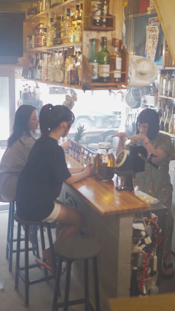 出会ったナミとともに、地元のバーで泡盛を味わう。